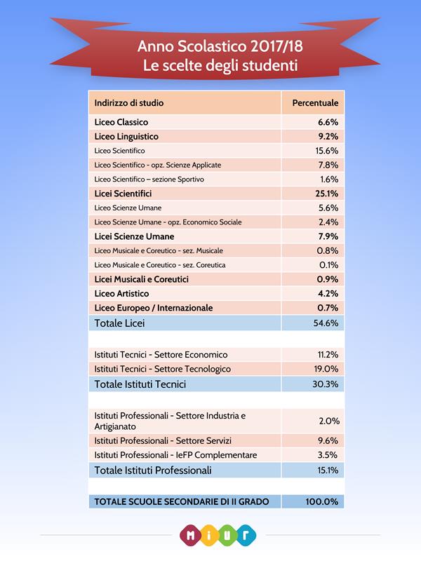 confermano il trend di crescita degli indirizzi liceali, scelti dal